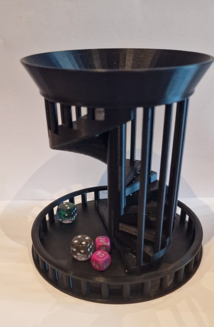 Designet med en imponerende spiraltrapp som fører terningene elegant ned til bunnskålen, gir dette tårnet en flott visuell effekt samtidig som det sørger for jevne og tilfeldige kast hver gang.