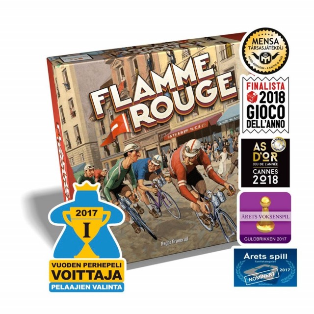 Flamme Rouge er et raskt og taktisk sykkelspill hvor du styrer et lag med to ryttere som kjemper om å krysse målstreken først. Spillet vant Guldbrikken Årets Voksenspil 2017.